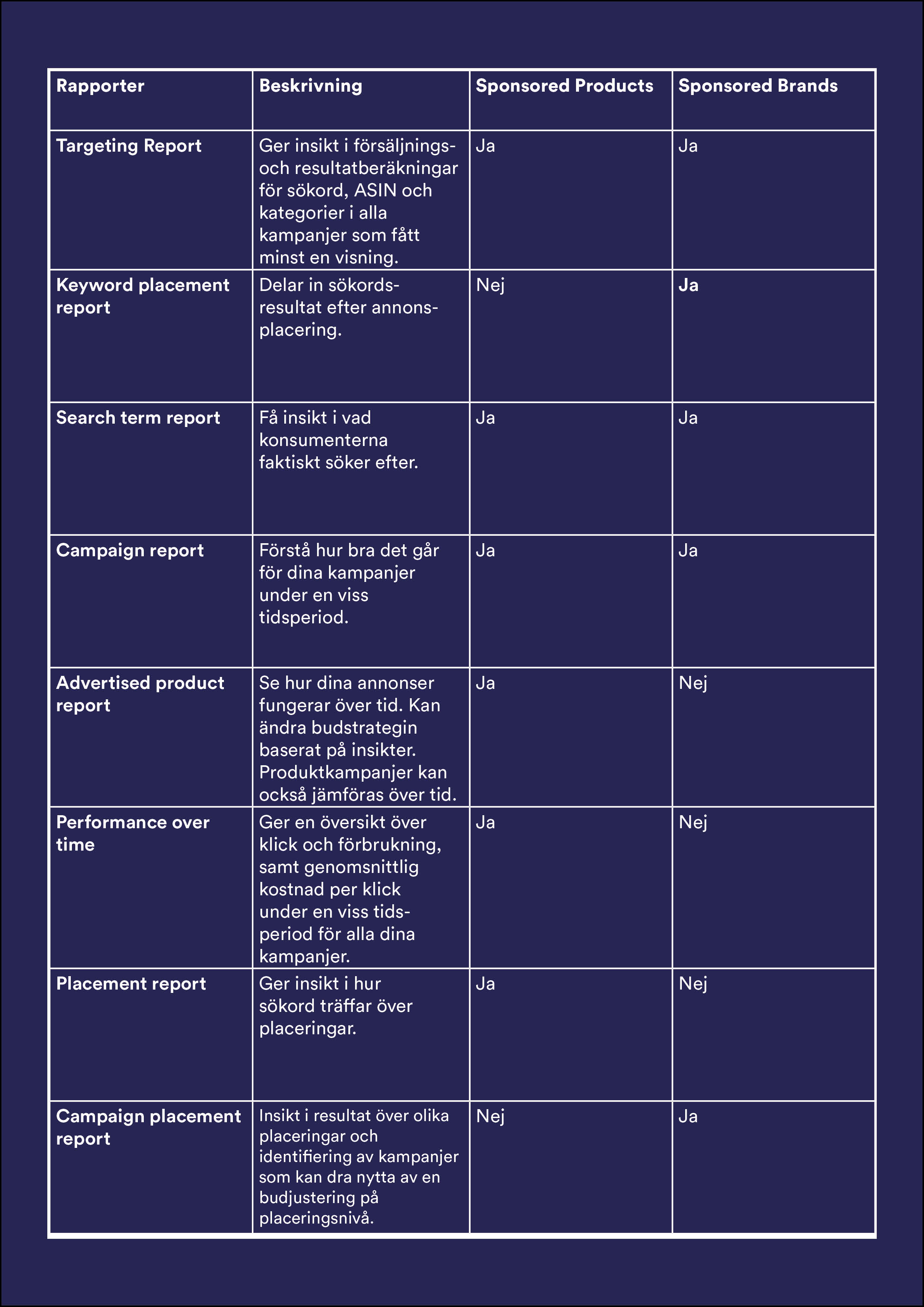 - Granska resultaten regelbundet för att optimera kampanjer med hjälp av annonseringsrapporter