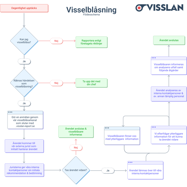 Vi uppmanar dig att visselblåsa vid misstanke om ett missförhållande inom företaget med allmänintresse av att det kommer fram. Är du osäker uppmuntrar vi dig att läsa mer i vår visselblåsarpolicy. Du behöver inte bevis för din misstanke, men alla rapporteringar måste lämnas i god tro.